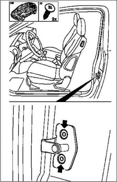 Опель Корса (2000-2006): Снятие и установка скобы замка передней двери