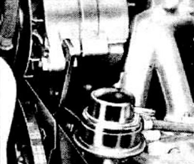 Отсоединить натяжную планку генератора и снять клиновой ремень.