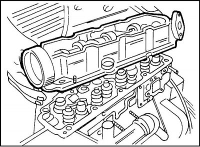 Головка цилиндров может быть снята на установленном двигателе. Эта операция коротко описывается ниже. Необходимо также ознакомится с содержанием раздела, описывающим снятие двигателя, так как многие работы по снятию двигателя необходимо выполнить также при снятии головки цилиндров. Если двигатель уже снят, подготовительные работы могут не проводиться.