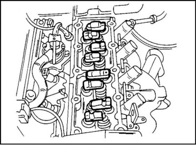Собирается головка цилиндров в последовательности, обратной разборке и в соответствии с описанием для двигателя OHC. При этом необходимо выдерживать следующие моменты затяжки: (см. Спецификации).