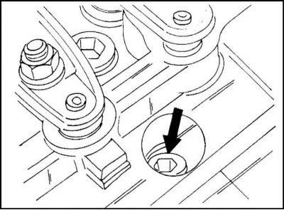 15. Поверните оба вставленные сверху винта налево и направо наружу. Винты крепят блок управления к головке цилиндров.
