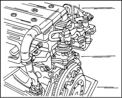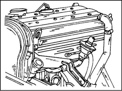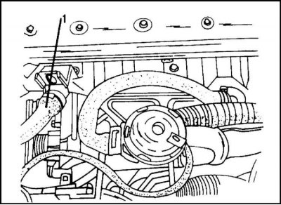 1. Двигатель этого типа с середины 1995 г. выпуска имеет клапан рециркуляции отработавших газов и клапан вентиляции топливного бака, расположенные на обратной стороне головки цилиндров, как это показано на иллюстр.