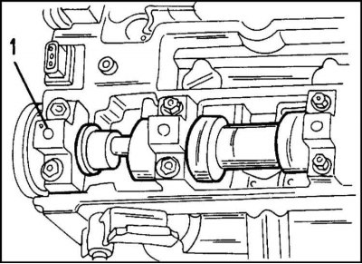 13. Отверните болты крепления и отсоедините крышку корпуса подшипников распределительного вала.