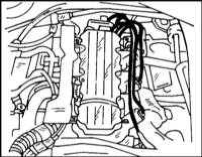 2. Упомянутый выше модуль зажигания находится сзади, справа от двигателя в месте, показанном на иллюстр.