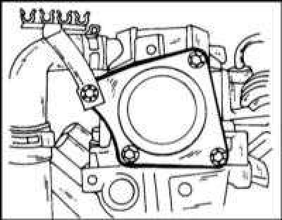 17. Снимите головку цилиндров с блока, при этом необходимо следить за тем, чтобы не повредить выключатель дроссельной заслонки и саму заслонку.