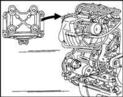 5. Головка цилиндров может быть снята вместе с коллектором или коллектор может быть отсоединен от головки цилиндров до ее снятия. Если, например, необходимо заменить только прокладку головки цилиндров, можно отсоединить впускной трубопровод от головки цилиндров и сдвинуть его в сторону. Таким образом можно сэкономить работу по отсоединению различных трубопроводов, кабелей и шлангов.