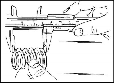 2. Если бывшая в употреблении пружина сжимается больше, чем новая, то это указывает на усталость пружины и она должна быть заменена в комплекте.