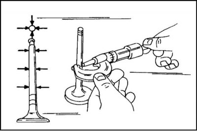 Поврежденные клапаны могут восстанавливаться посредством притирки. Если это не удается достичь, клапан заменяется. Необходимо измерить диаметры стержней клапанов и отверстий направляющих втулок и на основании полученного результата сделать вывод о целесообразности проведения дальнейших работ с головкой цилиндров.