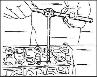 9. Если заменяются направляющие, то замене подлежат также и клапаны. После этого необходимо притереть седла клапанов.