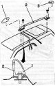 Продольные направляющие на крыше Снятие Снимите переднюю и заднюю крышки (1 и 3) с продольных направляющих крыши. Выверните 4 болта и снимите продольные направляющие (2) с крыши. Установка...