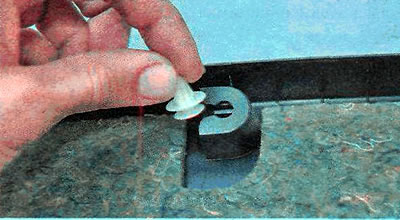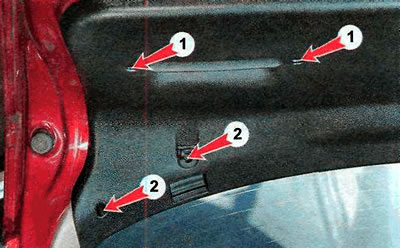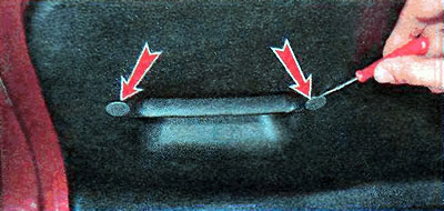 2. При помощи тонкой шлицевой отвертки извлекаем из обивки двери багажного отделения две заглушки.