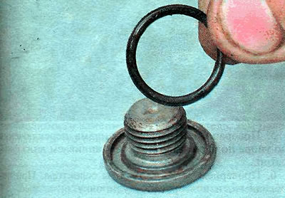 7. Очищаем резьбу пробки сливного отверстия, заменяем резиновое кольцо.
